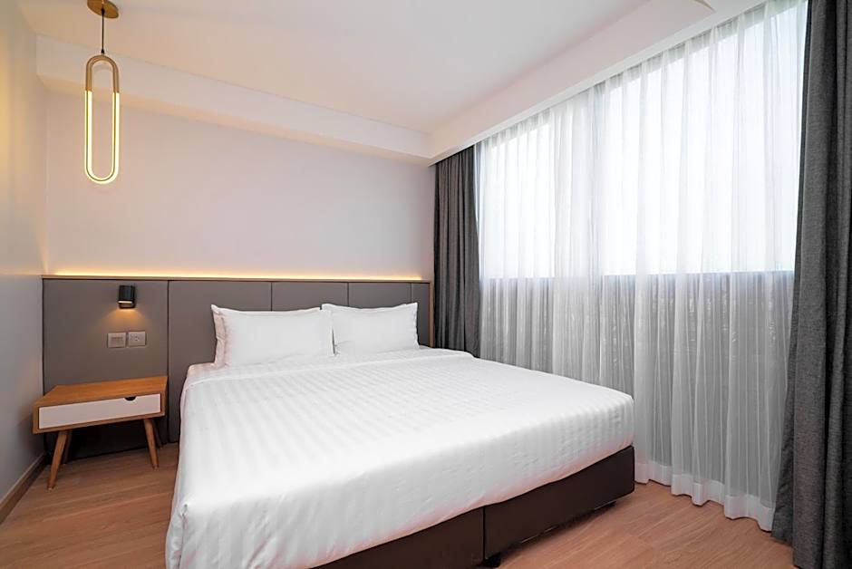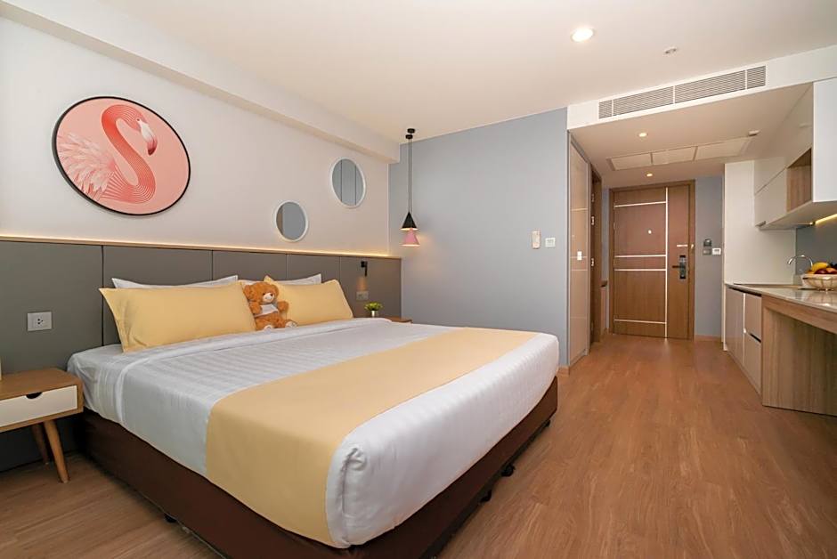 The well-fitted kitchen features a refrigerator, a microwave and an electric kettle. The spacious double room provides air conditioning, a seating area, a balcony with city views as well as a private bathroom featuring a shower. The unit offers 1 bed.